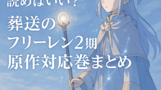 異世界・ファンタジー 『葬送のフリーレン』アニメ2期は原作何巻から?続きは8巻から!試験編の見どころ&読む順番ガイドも解説 アニメ『葬送のフリーレン』第2期の続きは原作漫画の何巻から?8巻からの展開や一級魔法使い試験編の見どころ、電子書籍サービス比較も紹介! 2025.11.29 異世界・ファンタジー